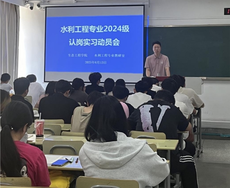 6月13日上午,水利工程专业在教三楼C308召开了2024级认岗实习动员会,专业全体教师和2024级全体学生参加了此次会议。